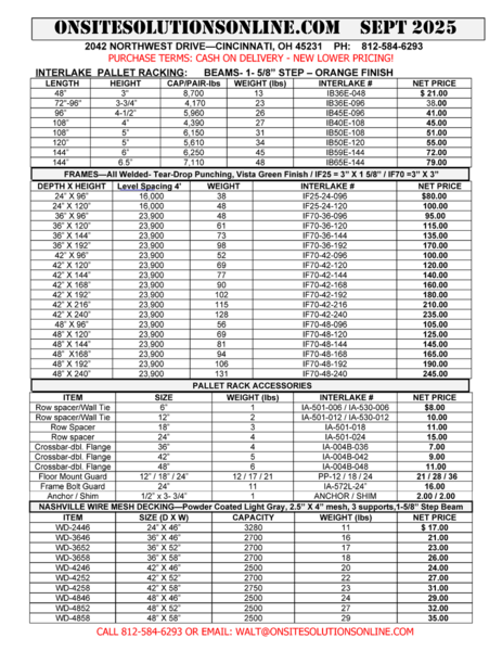 Below images of select offerings and reference photos, some with published Pallet Rack pricing. Offers subject to prior sale.